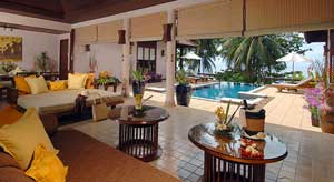 The Beach Villas Three Bedrooms With a living space of approximately 650 square meters and decorated in a classy contemporary Thai style, the Beach Villa Three Bedrooms consists of 3 air conditioned bedrooms with large bathrooms equipped with outdoor bathtub.